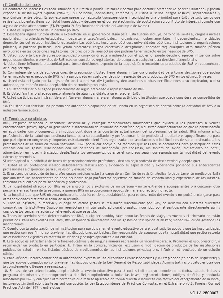 los participantes a cargo de BMS Se seleccionarán 3 participantes. BMS le confirmará si ha sido seleccionado
