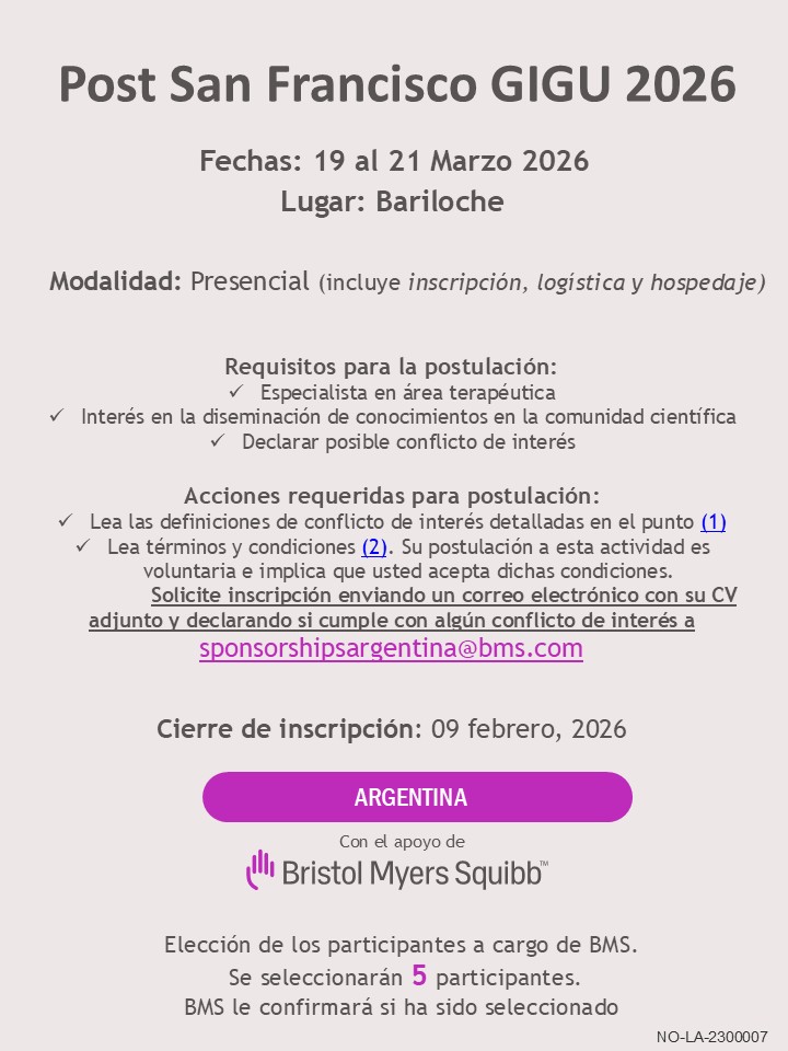 - Enviar el CV actualizado a: preceptorshipsargentina@bms.com