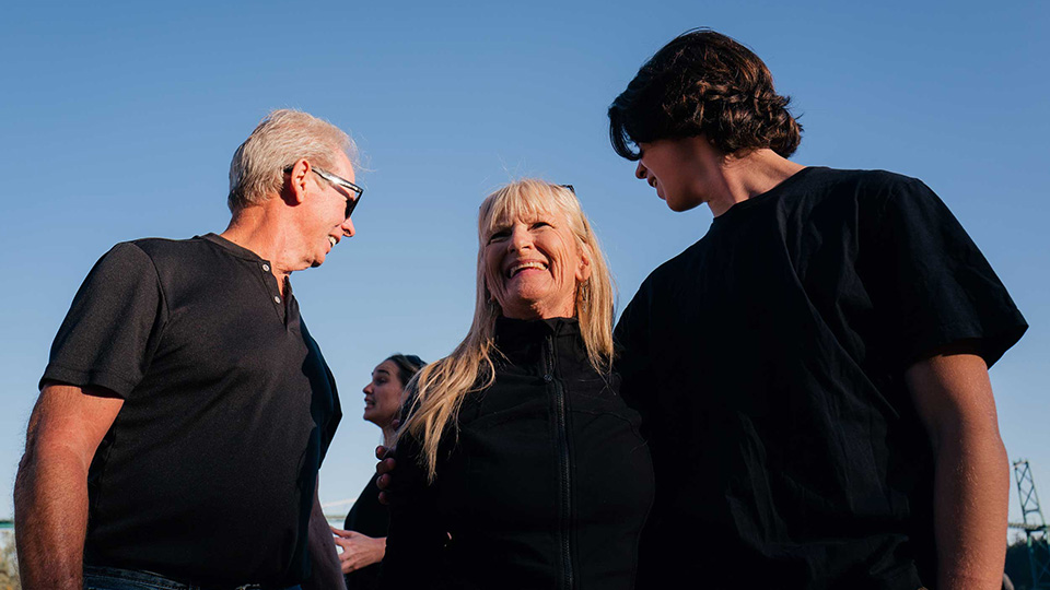 Entourée de son mari Scott, de sa nièce Lyanne et de son petit-neveu Kale, Kathy déclare que son amour du plein air n’a pas disparu depuis qu’elle a reçu le diagnostic de mélanome. « Mais je suis beaucoup plus sage qu’avant le diagnostic. Je ne sors pas aux heures d’ensoleillement maximal, je me couvre d’écran solaire et je porte des chapeaux et des lunettes de soleil. »