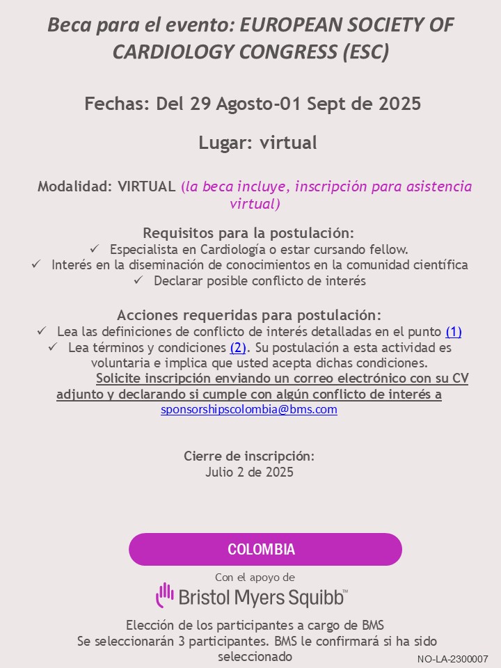 Beca para el evento: EUROPEAN SOCIETY OF CARDIOLOGY CONGRESS (ESC)