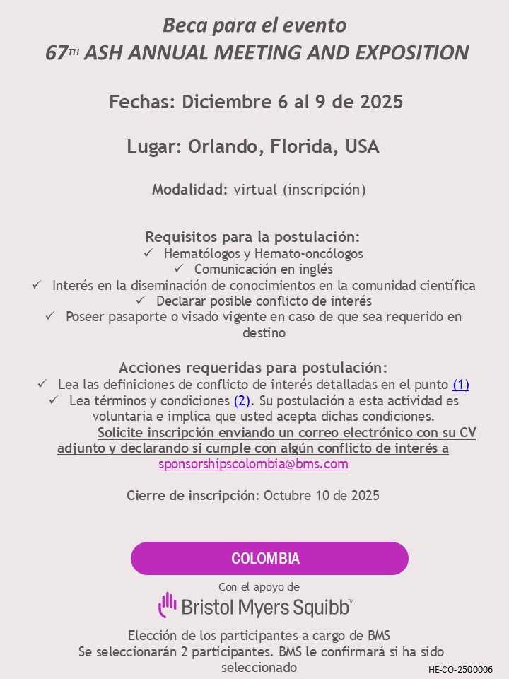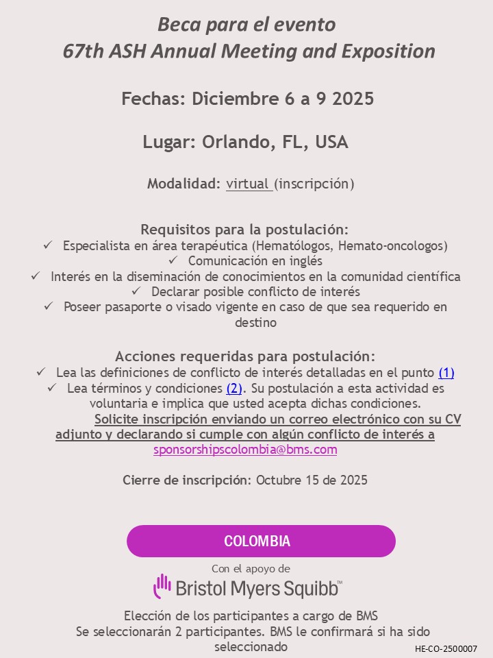 - Especialista en área terapéutica (hematología/hemato-oncología)