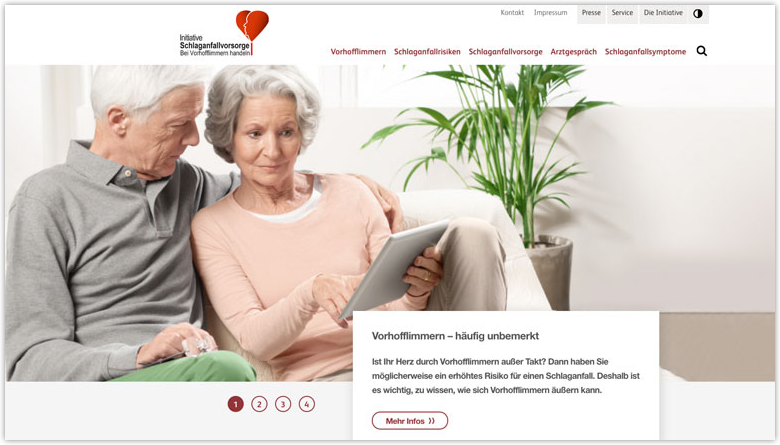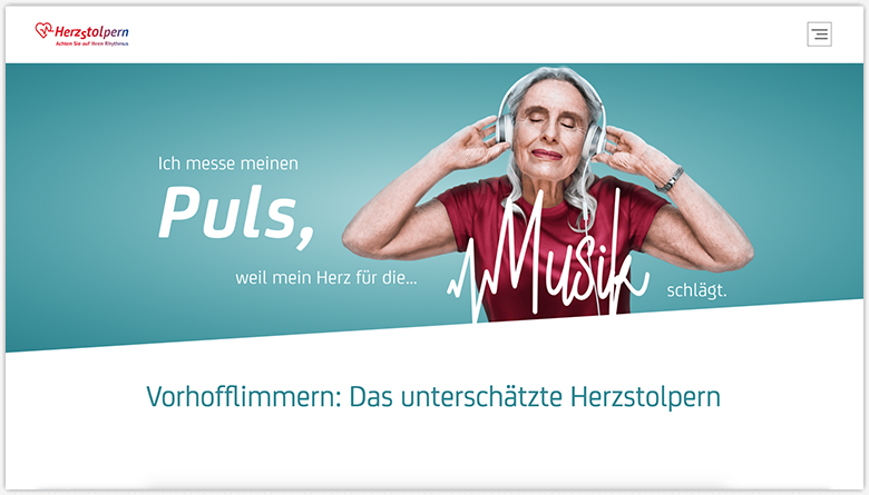 Die Initiative Herzstolpern möchte Bewusstsein für Vorhofflimmern, einen wichtigen Risikofaktor für Schlaganfälle, schaffen. Neben Informationen über Ursachen, Symptome und Risiken unterstützt die Webseite mit einer praktischen Anleitung zum richtigen Pulsmessen auch dabei, Anzeichen für Vorhofflimmern selbst zu erkennen.