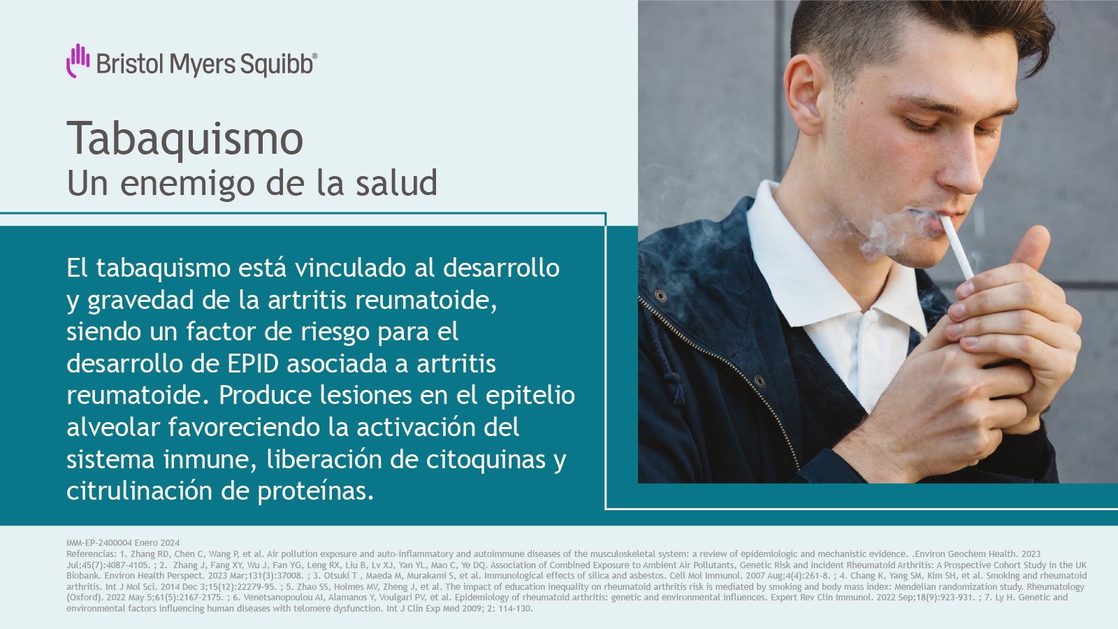 La Artritis Reumatoide (AR) impacta en la vida de los pacientes que la sufren, siendo la Enfermedad Pulmonar Intersticia Difusa (EPID) una de las principales asociaciones por comorbilidad a esta patología.