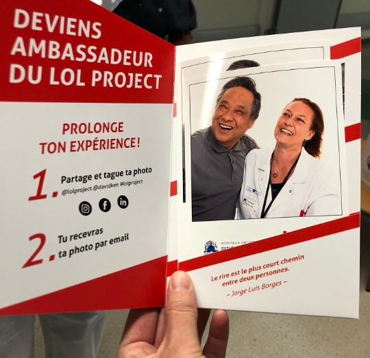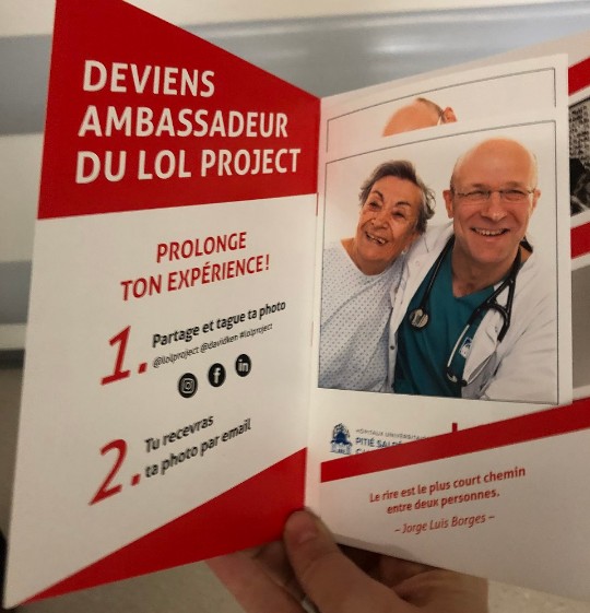 Pour David Ken, créateur et photographe du LOL Project « patients et soignants se rencontrent et se voient autrement. Parce qu’ils se croisent tout le temps mais ils ne se connaissent pas. Et maintenant, ils ont une image qui les relie tous les deux. Et ça n’a pas de prix ! » C’est là où le concept révèle toute sa force : faire du bien grâce aux bienfaits du rire. Un patient qui a participé à la session photo revient sur son expérience :