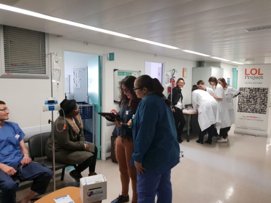 Dans les services où les patients sont pris en charge pour des maladies graves, le quotidien n’est pas toujours facile. Les séjours à l’hôpital sont des moments parfois pesants, entre la réalisation d’examens et l’administration des traitements. A ces étapes qui peuvent être angoissantes, s’ajoute une attente souvent longue, où les patients sont confrontés à la solitude et l’éloignement de leurs proches. Le LOL Project a pour objectif, l’espace d’un instant, de les sortir de leur quotidien, de créer des rencontres, de se changer les idées. C’est une bulle de bonheur à l’hôpital.