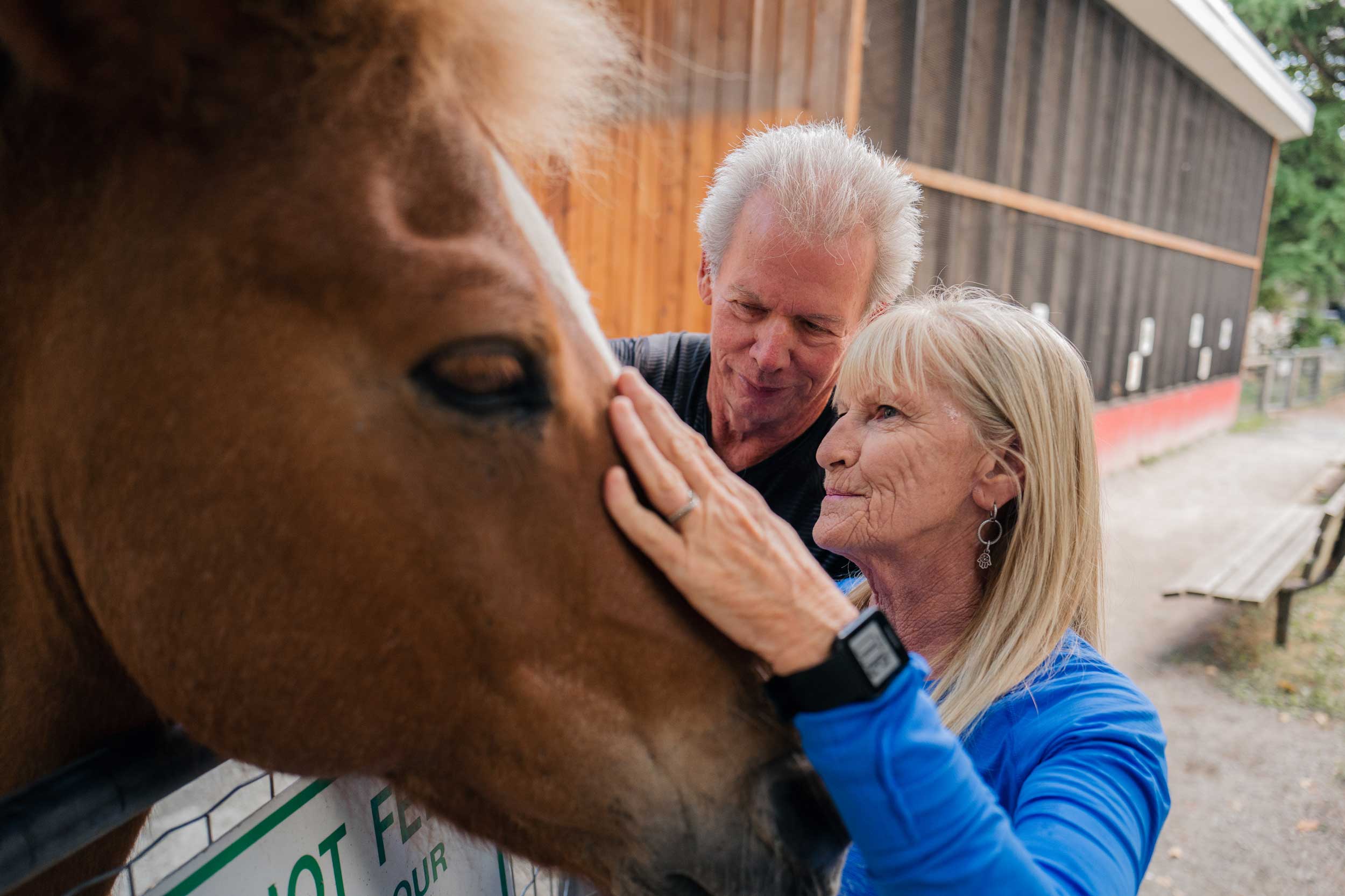 Kathy, Scott and their golden retriever Tucker find shade in one of their favorite spots, a creek alongside Maplewood Farm. Kathy and her family visited her “place of peace” nearly every day of the 30 years they lived in North Vancouver.