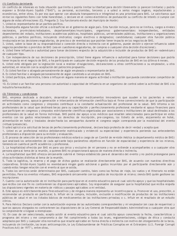 Elección de los participantes a cargo de BMS Se seleccionarán 3 participantes.