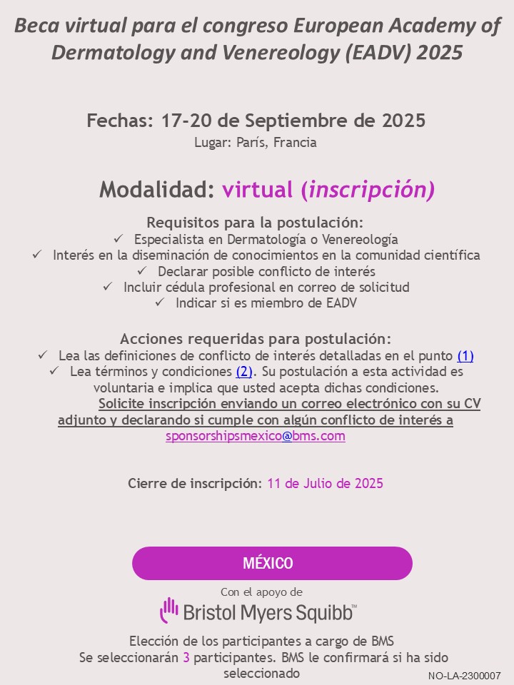 Beca virtual para el congreso European Academy of Dermatology and Venereology (EADV) 2025