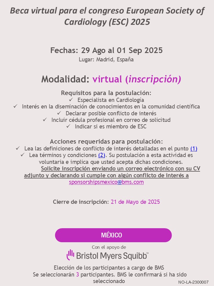 Beca virtual para el congreso European Society of Cardiology (ESC) 2025