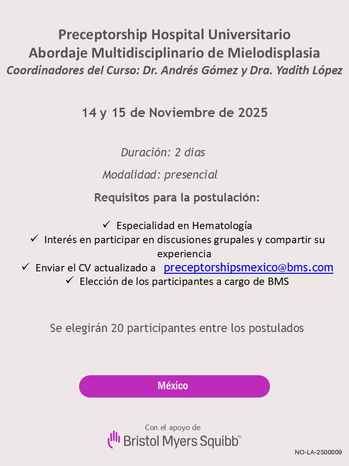- Enviar el CV actualizado a preceptorshipsmexico@bms.com