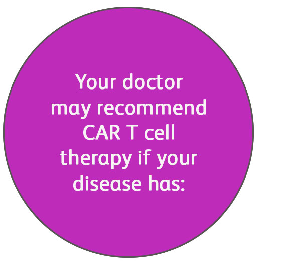 - Includes a short course of chemotherapy before CAR T infusion to prepare the body to receive modified cells