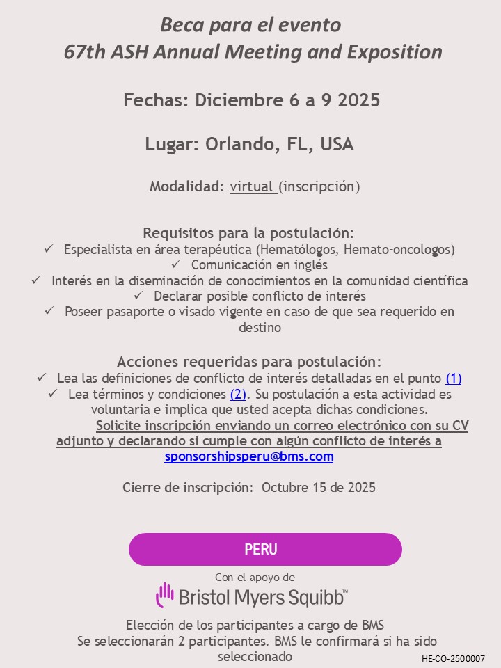 - Especialista en área terapéutica (Hematólogos, Hemato-oncologos)