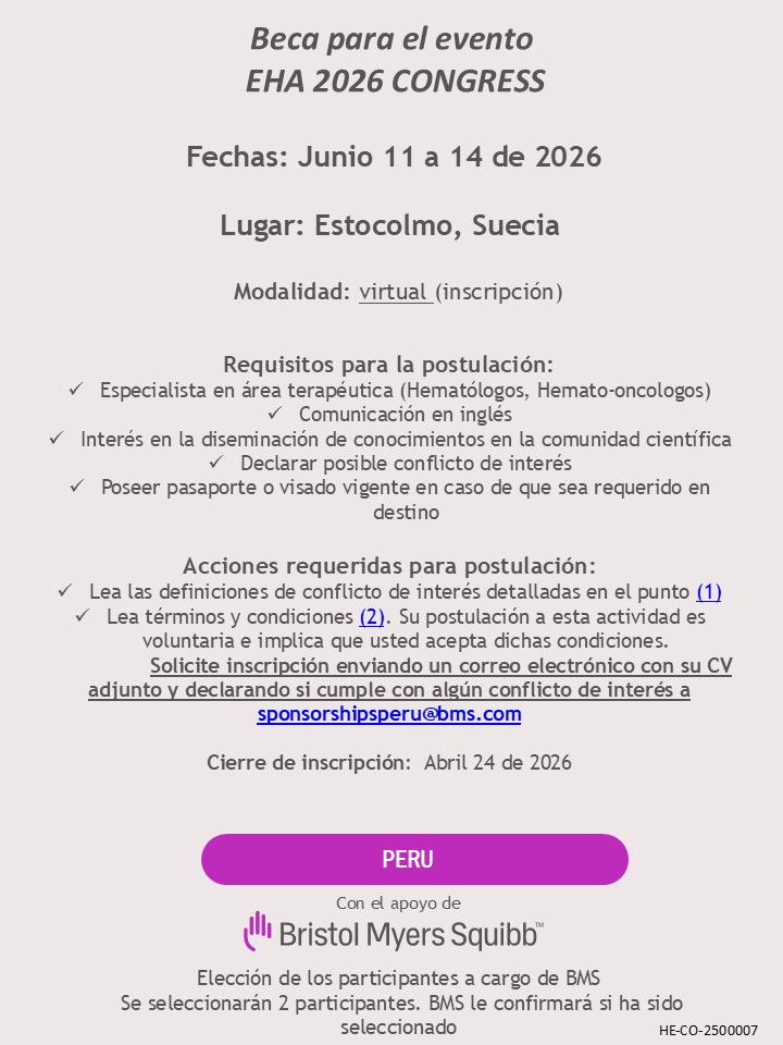 Beca para el evento 30TH EHA CONGRESS