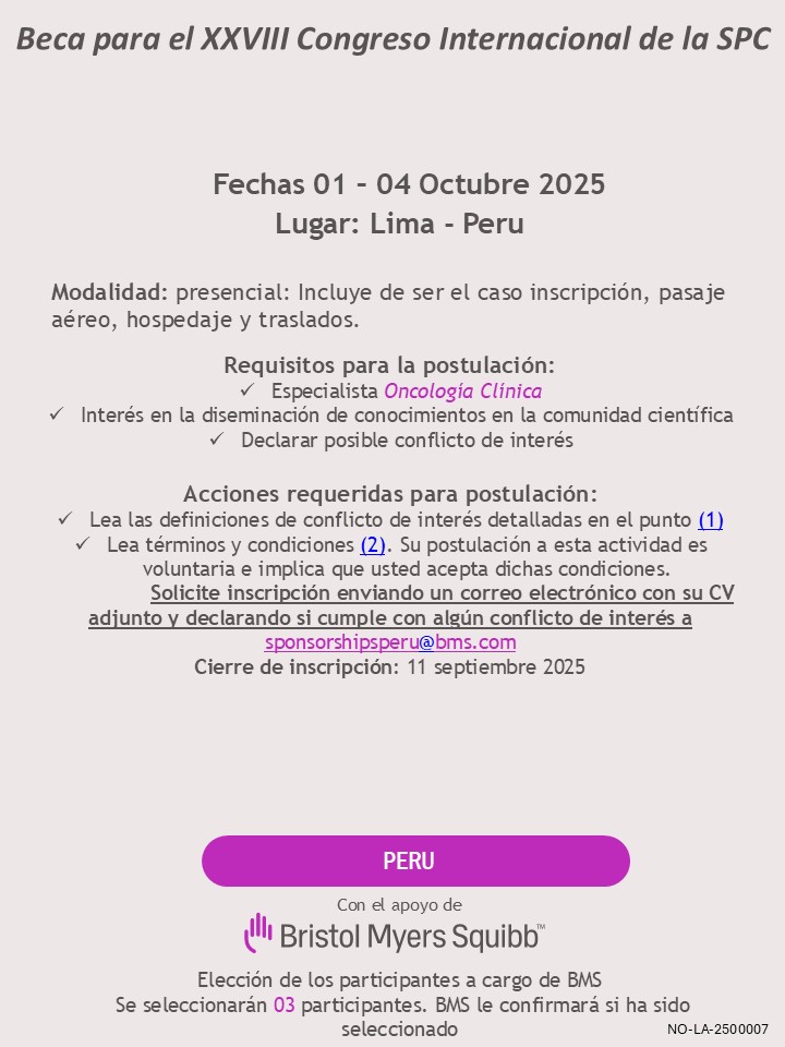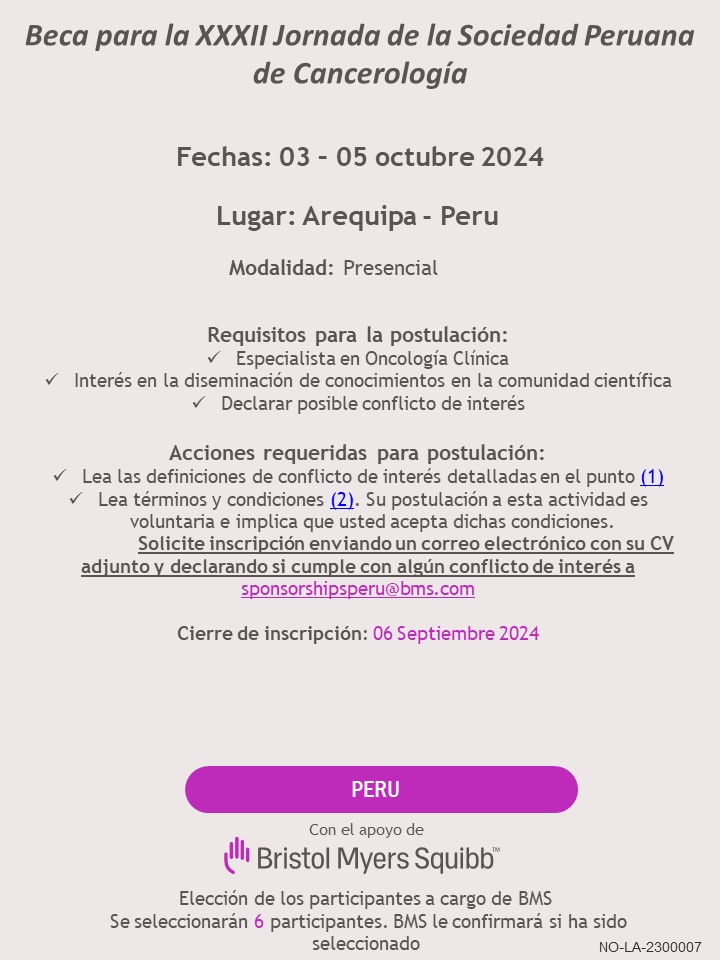 Beca para la XXXII Jornada de la Sociedad Peruana de Cancerología