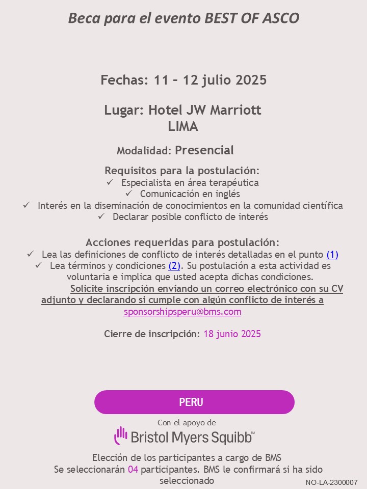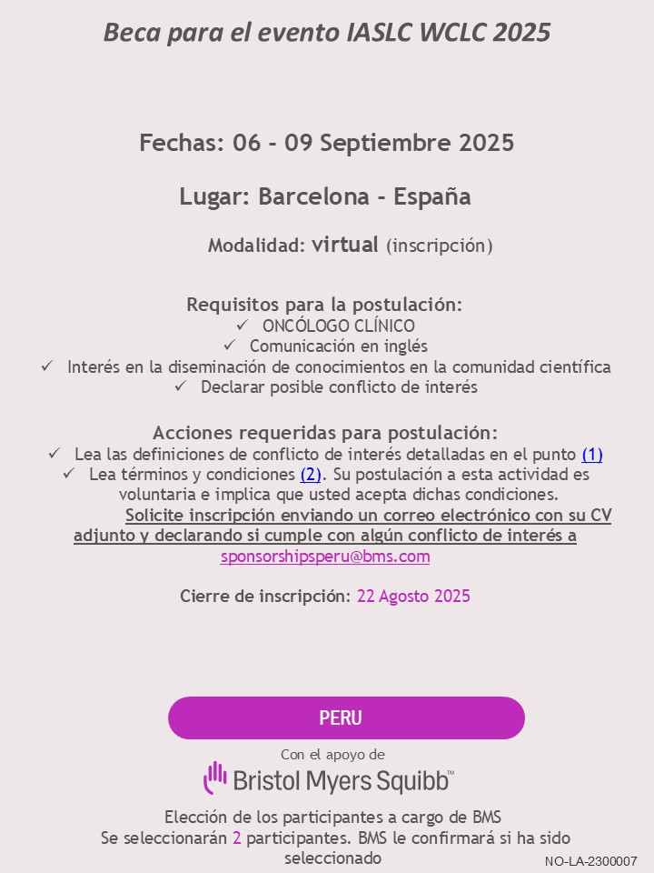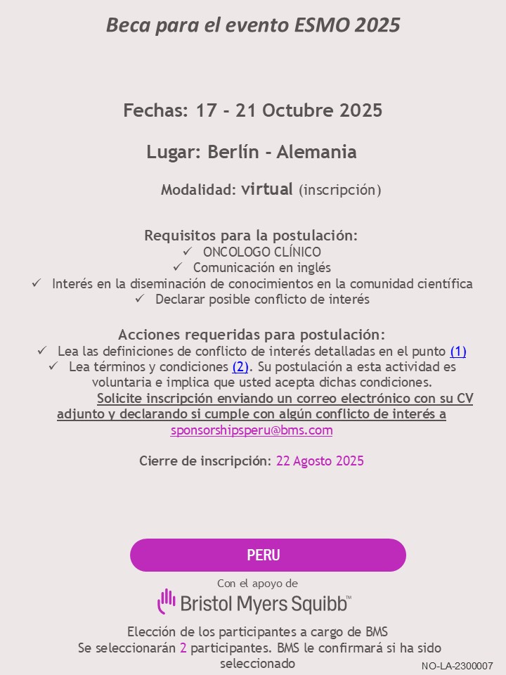 Beca para el XIV Congreso Peruano de Oncología Médica