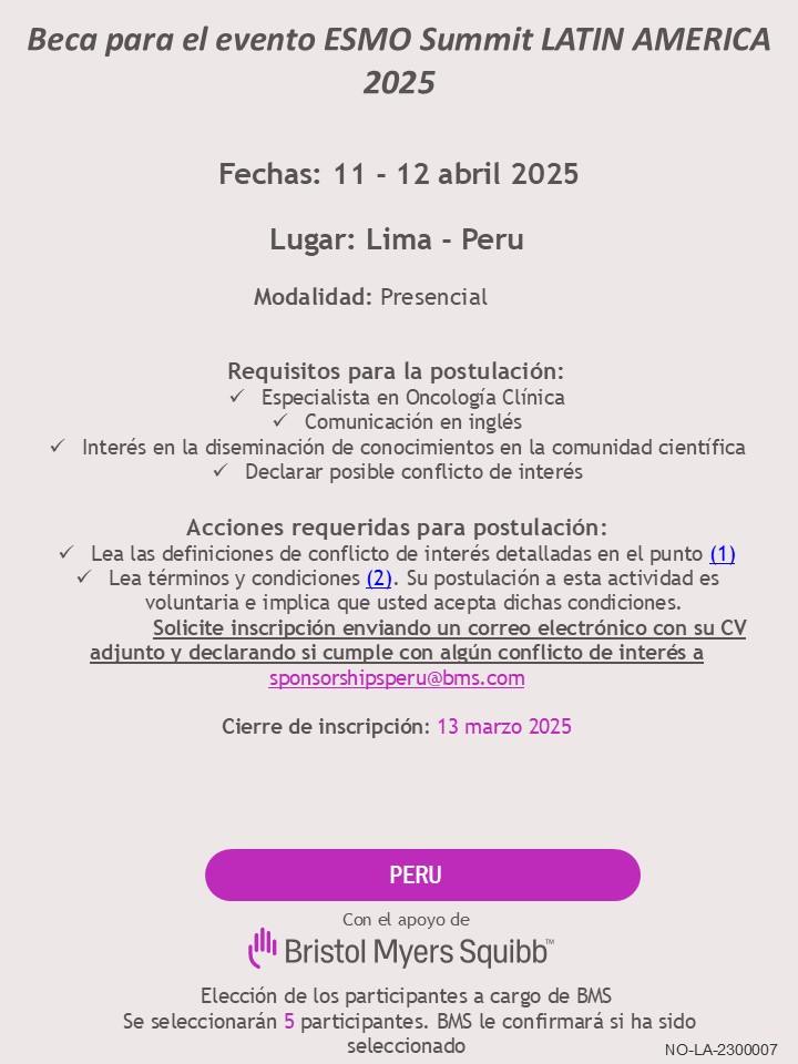 Beca para el evento ESMO Summit LATIN AMERICA 2025