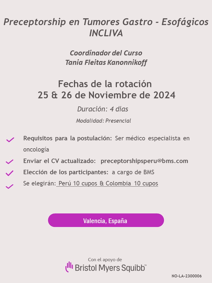 - Enviar el CV actualizado: preceptorshipsperu@bms.com
